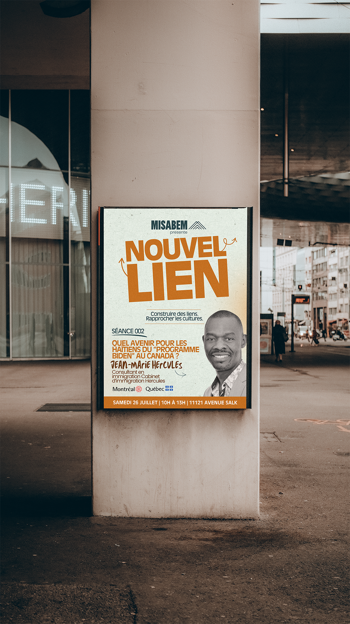 We developed the full brand identity, beginning with naming, logo design, and initial visual assets to anchor future communications. The goal was to position Nouvel Lien as both a community-building platform and a recognizable cultural program that embodies MISABEM’s mission: mobilizing and pooling resources to help immigrant families thrive to their fullest potential.